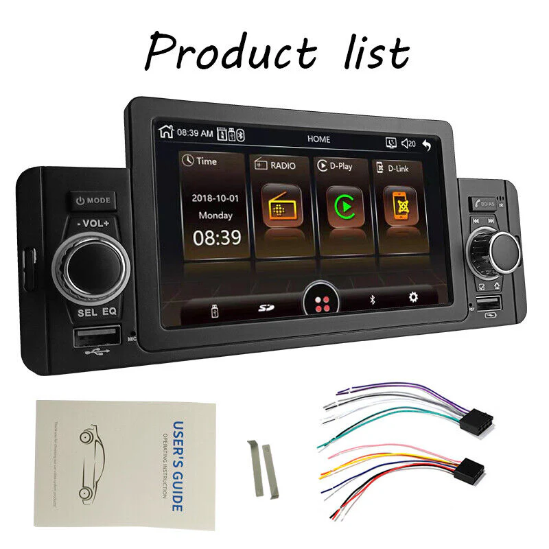 1 Din Auto Radio Estéreo para coche 5" Bluetooth Reproductor MP5 Pantalla táctil