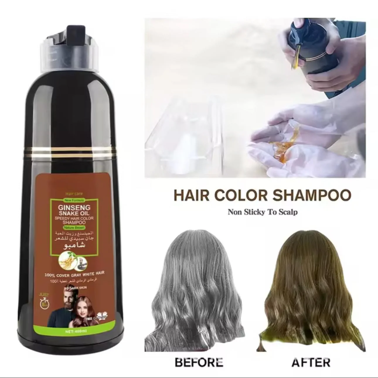 Champú para Cabello marón, Champú De Tinte De Cabello marón Instantáneo, Colágeno, Aceite de Argán, Tinte para el Cabello, Champú para Tinte, para Cubrir el Cabello Canoso (400 Ml)