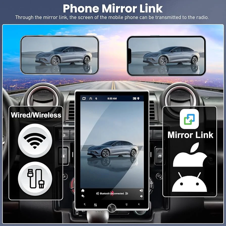 DIN pantalla táctil vertical estéreo para coche inalámbrico CarPlay Android Auto, pantalla giratoria motorizada de 10.4 pulgadas Radio para coche con enlace espejo WiFi