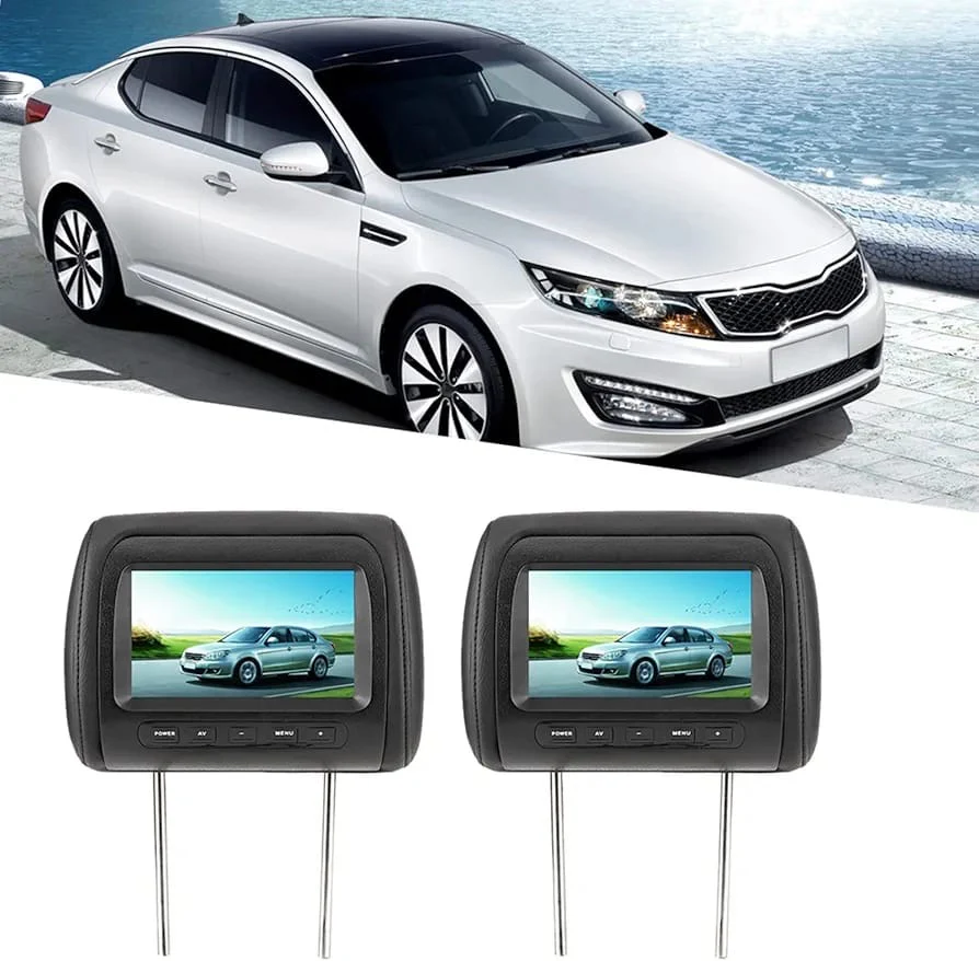 Monitor de Reposacabezas, universal, 2 Piezas 7 en Control Inalámbrico Reposacabezas Ajustable Monitor de Video HD LCD Reproductor de Automóvil Pantalla MP5 Negro Universal DC 12V